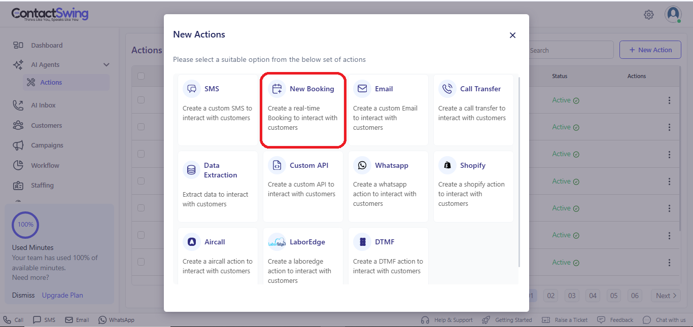 Choose Real-Time Booking Action from the list of available action types to begin the setup.